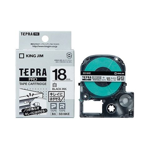 キングジム(Kingjim) テプラPRO テープカートリッジ 白/黒文字 キレイにはがせるラベル SS18KE(03471)