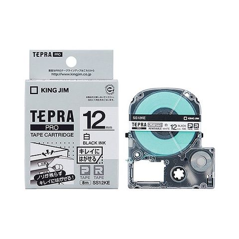 キングジム(Kingjim) テプラPRO テープカートリッジ 白/黒文字 キレイにはがせるラベル SS12KE(03470)