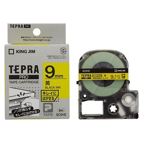 キングジム(Kingjim) テプラPRO テープカートリッジ 黄/黒文字 キレイにはがせるラベル SC9YE(15449)