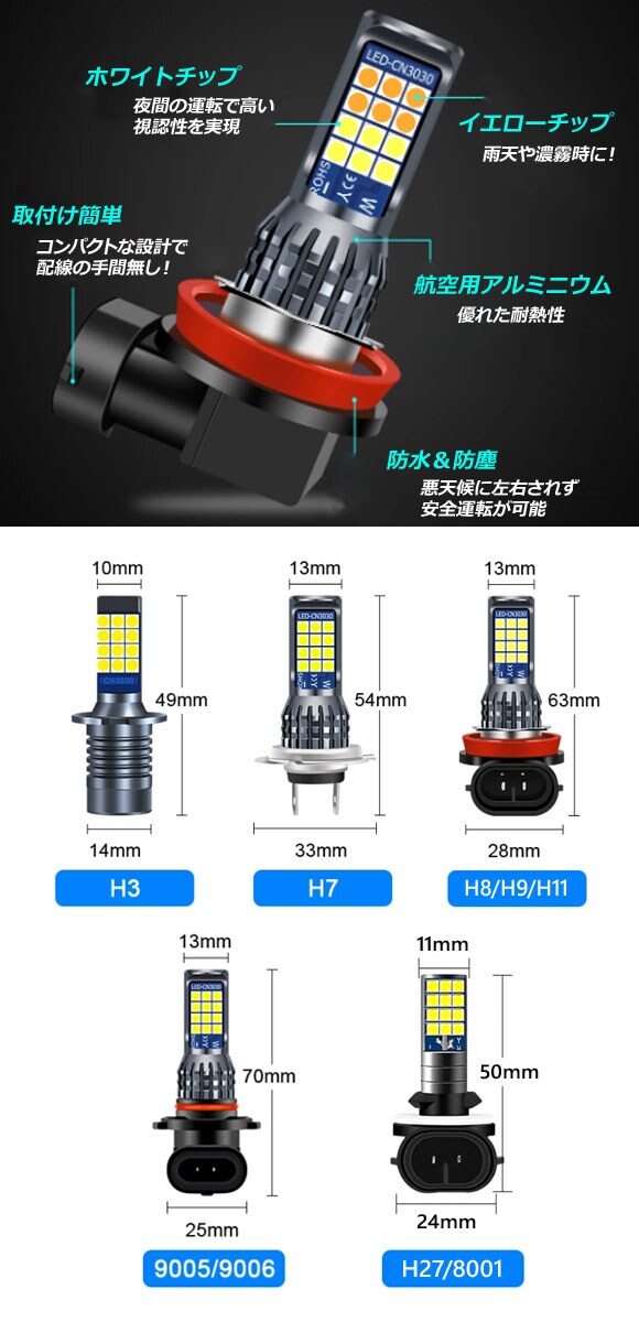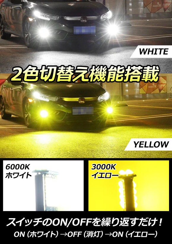 フォグランプ フォグライト LEDバルブ フロントランプ フロントライト ポジションランプ ポジションライト ポジション デイライト デーライト デイランプ デーランプ デイタイムライト デイタイムランプ デイタイムランニングランプ デイタイムランニングライト フォグ ヘッド 霧灯 一体型 LED バルブ キット セット 前照灯 ライト ランプ 照明 点灯 発光 カラーチェンジ 2色 ツインカラー ダブルカラー 切替 切り替え ドレスアップ 交換 ソケット 左右 白 黄色 WHITE YELLOW