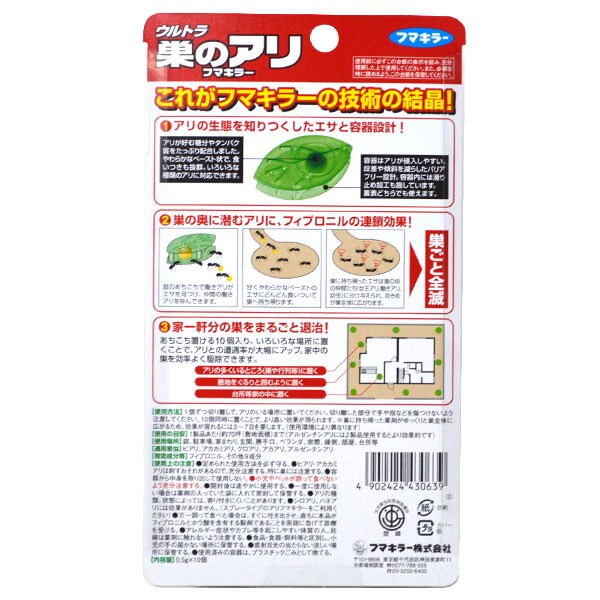 毒餌剤 駆除剤 殺虫剤 殺虫 駆除 置き型 置く 毒餌 えさ 餌 エサ 巣 庭 駐車場 家まわり 玄関 勝手口 出入口 バルコニー ベランダ 窓際 縁側 窓 部屋 台所 キッチン 侵入 10個 10P 蟻 アリ ヒアリ アルゼンチンアリ クロアリ アカアリ アカカミアリ