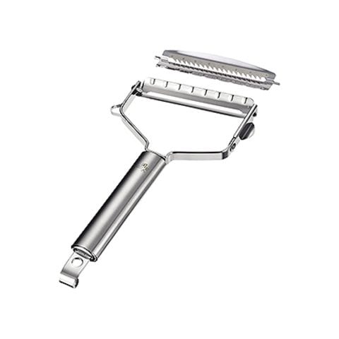 皮むきだけでなくキャベツの千切りなどに便利なワイドスライス刃と身幅のある大根も調理しやすいワイド千切り刃のセット。