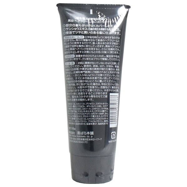 KUROBARA クリーム スタイリング スタイリング剤 ヘアスタイリング ヘアスタイル 整髪 整髪料 整髪剤 黒髪 白髪 白髪染め 自然 染髪 染まる 染める ヘアケア ケア ヘア ヘアー 髪 髪の毛 洗い流さない アウトバス 縦型 チューブ 150グラム 便利 便利グッズ