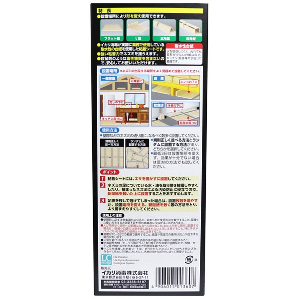 IKARI ネズミ捕り ねずみ捕り ねずみとり ネズミとり ネズミ ねずみ 鼠 捕獲 捕まえる 粘着 粘着式 粘着シート くっつく くっつける 貼り付ける はりつく 天井裏 天井 屋根裏 倉庫 物置 スノコ 什器 厨房 家庭 家 台所 キッチン 飲食店 壁際 侵入口 通り道 設置 置く 置き型 シート 耐水 3枚 3個 3P