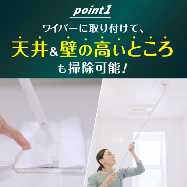 ●ワイパーにつければ、天井・壁も安全に掃除ができます。