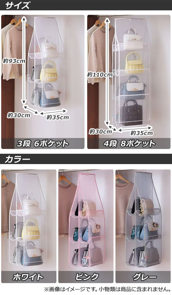 吊り下げ式収納 ホワイト 4段 8ポケット クローゼット内のスペースを有効活用!立体収納でバッグを型崩れから守る! AP-UJ1090-4D-WH