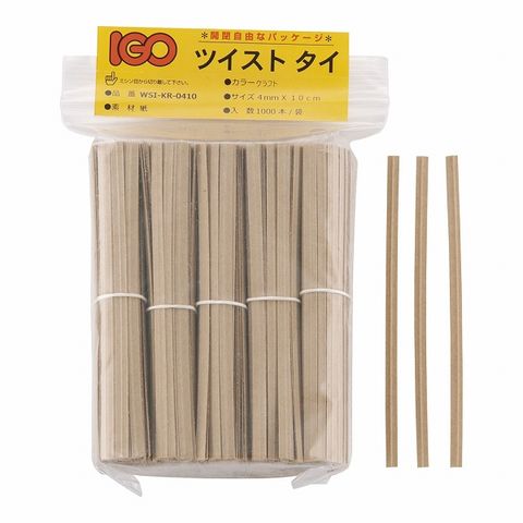 アイ・ジー・オー ツイストタイ 紙タイ クラフト 4mm×10cm 和紙調 入数:1セット(1000本入) WSI-KR-0410(XTI3704)