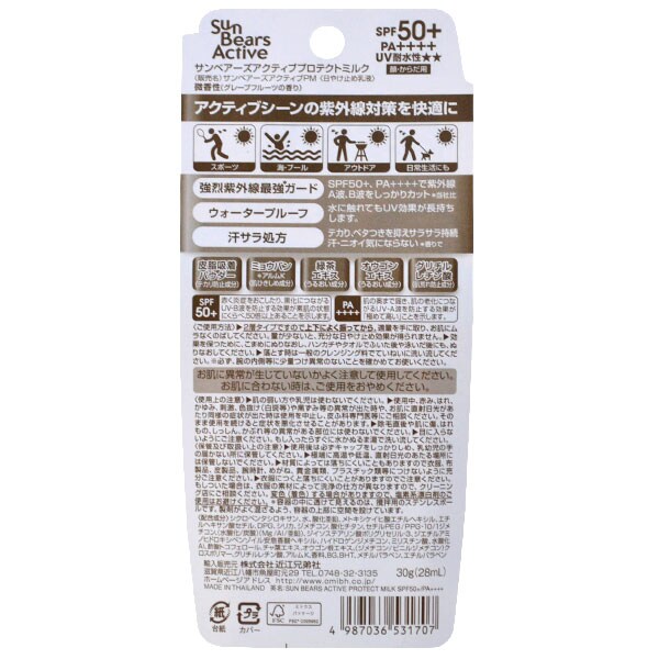 近江兄弟社 サンベアーズアクティブ プロテクトミルク 微香性 グレープフルーツの香り 30g