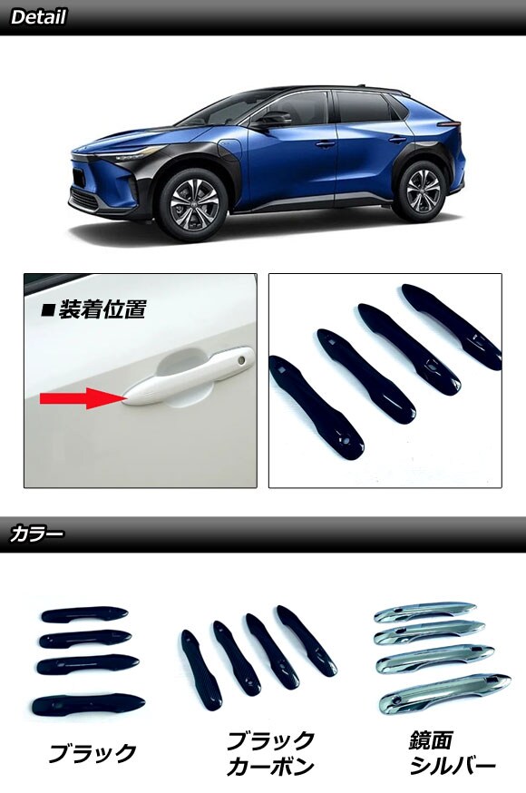ドアハンドルカバー トヨタ bZ4X 10系 2022年05月~ 鏡面シルバー ABS樹脂製 鍵穴1 キーレス穴4 入数:1セット(4個) AP-XT2501-KSI