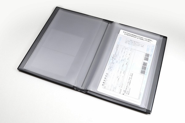 ● 自賠責保険証書などが収まるA5ポケットや、カードポケットも備えています。