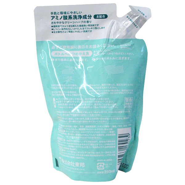 とうほう 台所用洗剤 食器用洗剤 キッチン用洗剤 液体洗剤 液体 液状 液 洗剤 洗浄剤 食器洗い キッチン 台所 洗う 洗浄 泡 スポンジ 除菌 汚れ 油汚れ 皿 コップ カップ 食器 フライパン 鍋 弁当箱 調理器具 料理 調理 キッチン用品 台所用品 詰め替え用 つめかえ用 詰替え つめかえ 詰替 袋 250ミリリットル 0.25L 0.25リットル