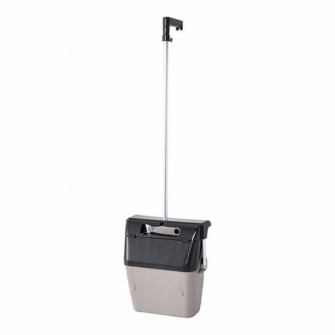 柄が長く、掃きこみがラクな樹脂製チリトリです。ホーキが掛けられるフック付き。棚の縁にチリトリを掛けられるグリップ付き。掛けた時フタが開閉しゴミ箱としても使用することができます。