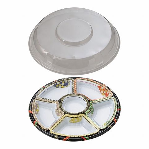 丸型オードブルセット 友禅 42cm 6仕切/透明蓋付 入数:1セット(10セット入) TOM-420-2(XAZ3202)