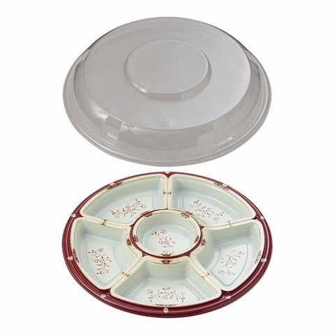 丸型オードブルセット ロイヤル 38cm 6仕切/透明蓋付 入数:1セット(10セット入) TOM-380(XAZ0906)