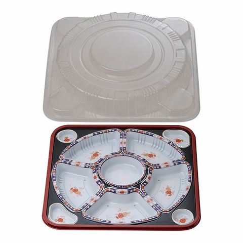 オードブル容器セット 有田 紺 38cm 6仕切/透明蓋付 入数:1セット(10セット入) TO-380(XAZ1006)