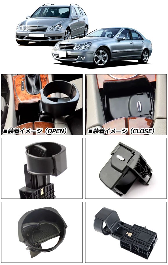 ドリンクホルダー メルセデス・ベンツ Cクラスステーションワゴン S203 C180/C200/C230/C240/C280/C320/C32AMG/C55AMG 2001年~2008年 ABS製 コンソールボックス用
