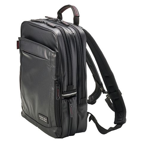 ●仕様:前面=ファスナーポケット2個/サイドポケット、前室=メッシュ小物入れ2個/ファスナー付ポケット/ウレタン入りオープンポケット、後室=13.3INCHノートPC・タブレット端末対応ポケット/ボトルホルダー(牛革グリップ)、側面=傘入れサイドポケット