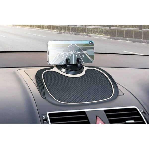 車のダッシュボードに置くだけで簡単に設置でき、マットの素材が柔軟でしなやかなので、丸みを帯びたカーブにも対応!