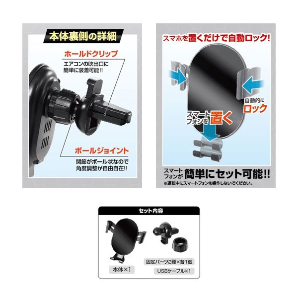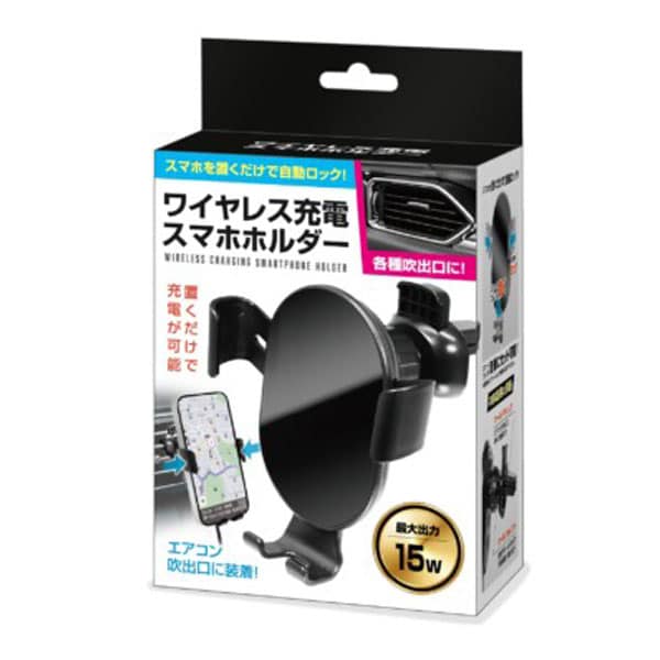 HAC(ハック) ワイヤレス充電 スマホホルダー ブラック 最大出力15W 角度調節可 エアコン吹出口に装着! HAC4332