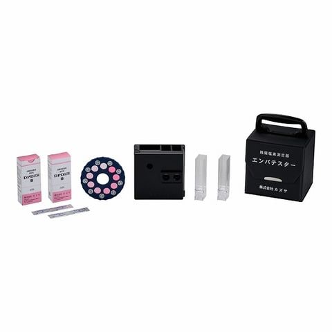 セット内容:ケース×1、測定器本体×1、比色用セル×2、残留塩素濃度用比色回転板×1、塩素用DPD試薬S(50包装)×2箱