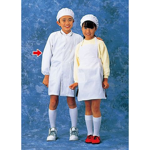 給食着 給食衣 エプロン 給食白衣 前ボタン 学校 給食 白衣 給食エプロン 給食当番 長袖 白 男女兼用 ユニセックス