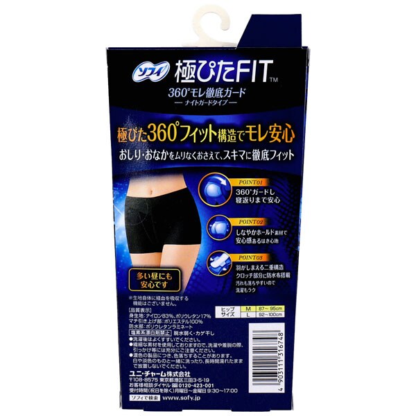 ソフィ 極ぴたFIT ナイトガードタイプ ブラック Mサイズ フィットしてモレ安心!