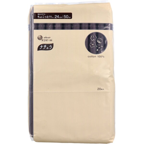 ナチュラ さら肌さらり ちょこっと吸水ナプキン コットン100% 24cm 50cc シンプルデザイン 急なときでもちょこっとケア 入数:1パック(20枚入)
