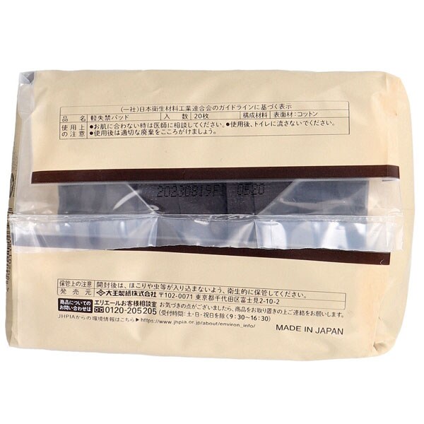持ち運びもおしゃれに。吸水ケア品らしくないブラウン個装。