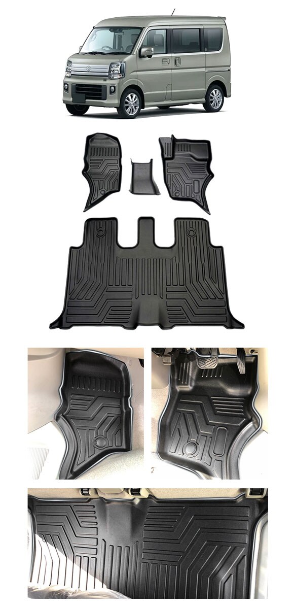 3D フロアマット スズキ エブリイワゴン DA17W 2015年02月~ TPE素材 立体構造 防水仕様 入数:1セット(4個) AP-IT3849