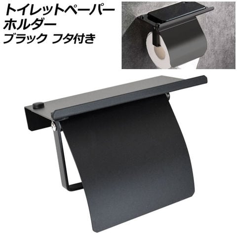 トイレットペーパーホルダー ブラック 天板付き フタ付き スマホや芳香剤を置ける AP-UJ1092-B-BK