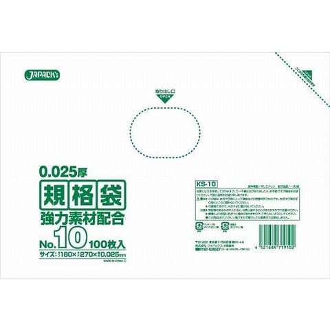ジャパックス(JAPACK'S) LD規格袋 透明 10号 ポリエチレン 入数:1セット(100枚入) KS-10(XPL3403)
