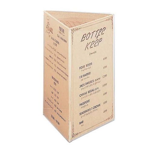 3面にメニュー、写真を入れ中心部はお客様の伝票をさし込みます。