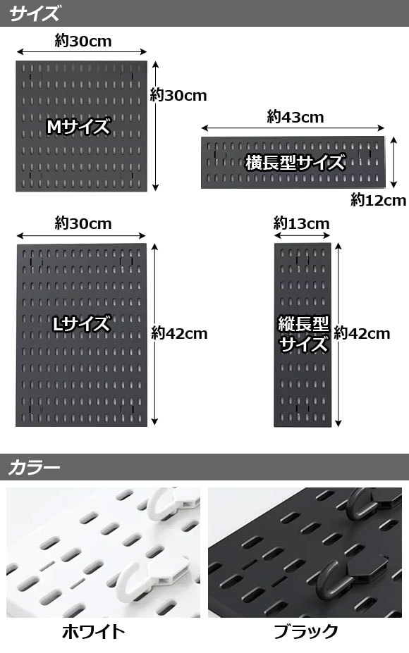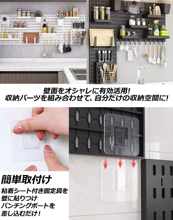 パンチングボード ホワイト 横長型サイズ プラスチック製 壁面を収納空間に!穴開け不要で簡単取り付け AP-UJ1097-B-WH