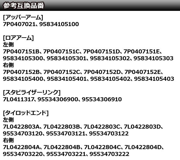 コントロールアーム アッパーアーム アッパースイングアーム ロワアーム ロアアーム サスペンションアーム スタビライザーリンク スタビリンク タイロッドエンド タイロッド 7P0407021 95834105100 7P0407151B 7P0407151C 7P0407151D 7P0407151E 95834105300 95834105301 95834105302 95834105303 7P0407152B 7P0407152C 7P0407152D 7P0407152E 95834105400 95834105401 95834105402 95834105403 7L0411317 95534306900 95534306910 7L0422803A 7L0422803B 7L0422803C 7L0422803D 95534703120 95534703121 95534703122 7L0422804A