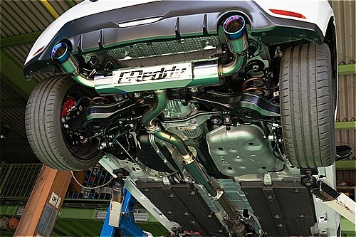 GReddyロゴ入りプレートとチタン風ヒートグラデーションテールの採用でリアビューをスタイリッシュに演出。