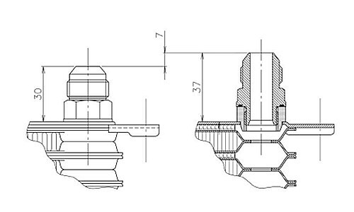 ※AN10アダプターユニオンを取り付けた場合、旧仕様のオイルクーラーコアに比べ、フィッティング取り付け時の高さが約7mm高くなります。