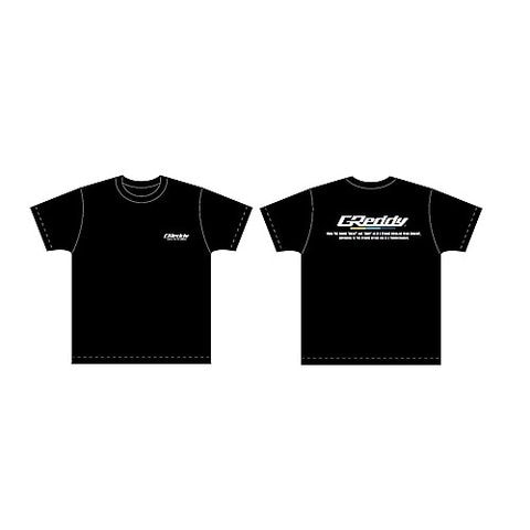胸にはGReddyロゴ、背中には【From the words 「GREAT」 and 「Eddy」 as In a strong swirling wind current, referring to the strong intake air of a turbocharger.(「GREAT」と「Eddy」という言葉から、強く渦巻いた風の流れとターボチャージャーの強力な吸入空気を連想させます。)】のメッセージが入ったTシャツです。