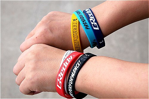 デザインデボス加工がされたオリジナルロゴが特徴のリストバンド。