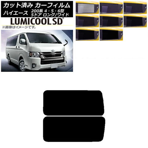カーフィルム ハイエース200系 4/5/6型 バン 5ドア ロング/ワイド リア 3列目 左右固定窓 アンテナ内蔵 最高品質 ルミクールSD 選べる8フィルムカラー AP-WFLC0136-RD2A