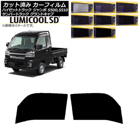 カーフィルム サンバーグランドキャブ/ハイゼットジャンボ S500/510J,P フロントドアセット 最高品質 ルミクールSD 選べる8フィルムカラー AP-WFLC0164-FD