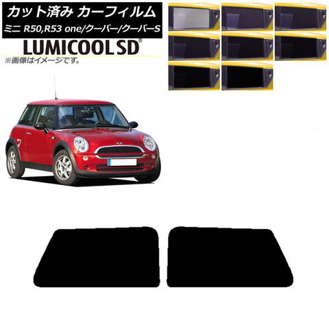 カーフィルム ミニ(BMW) MINI R50,R53 one/クーパー/クーパーS 3ドア リアサイド窓セット 最高品質 ルミクールSD 選べる8フィルムカラー AP-WFLC0304-RD