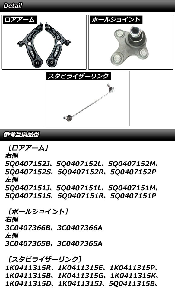 コントロールアーム アッパーアーム アッパースイングアーム ロワアーム ロアアーム サスペンションアーム スタビライザーリンク スタビリンク タイロッドエンド タイロッド フロントロアアームボールジョイント 5Q0407152J 5Q0407152L 5Q0407152M 5Q0407152S 5Q0407152R 5Q0407152P 5Q0407151J 5Q0407151L 5Q0407151M 5Q0407151S 5Q0407151R 5Q0407151P 3C0407366B 3C0407366A 3C0407365B 3C0407365A 1K0411315R 1K0411315E 1K0411315P 1K0411315B 1K0411315G 1K0411315K 1K0411315D 1K0411315J 5Q0411315B 5Q0411315A ■参考適合車種