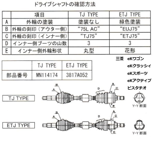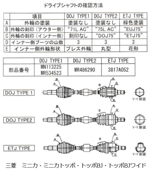 ブーツは、等速ジョイント内のベアリング部への水・異物の浸入と、潤滑用グリスの飛散を防止する商品であるが、車両の走行やハンドル転蛇により劣化または損傷しますので、定期的な点検と交換をお奨めいたします。