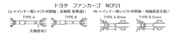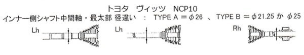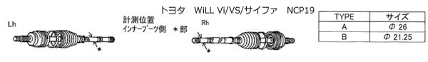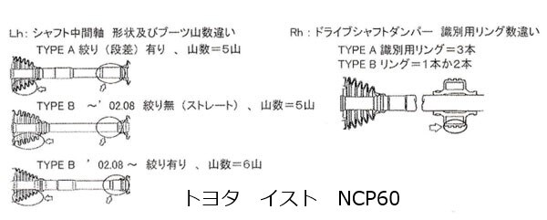 イスト NCP60 2NZ Type A 1300cc 2002年04月~2003年12月 ※現車の年式・ドライブシャフトTYPEを確認の上、ネオブーツを選定して下さい。 取付位置:アウター側