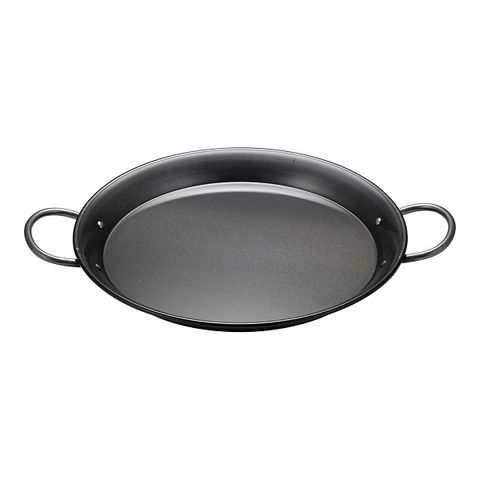 ヒキモト特製パエリア鍋。 黒皮鉄と豊富なサイズラインナップで長年愛されているパエリア専用鍋。
