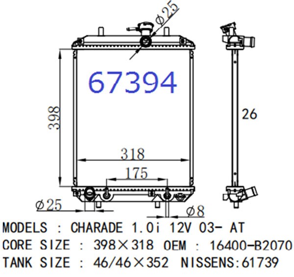 ラジエーター ダイハツ エッセ L235S KFVE AT 2005年11月~2016年09月 AP-KBR-0002