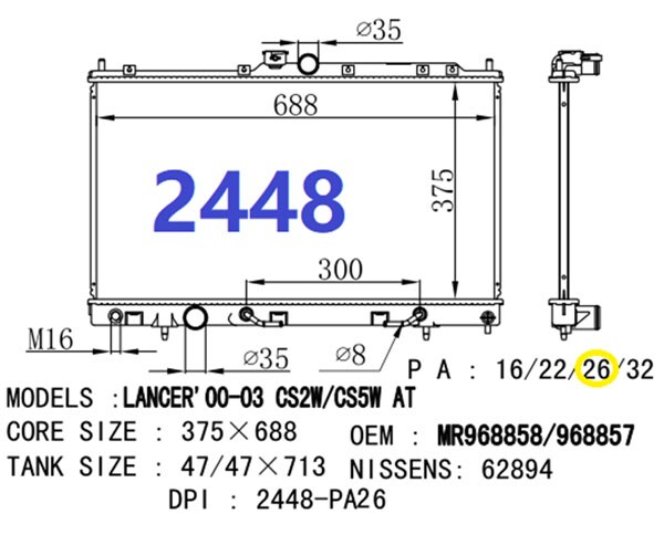 ラジエーター 三菱 ランサー CS2W 4G15 AT 2004年12月~2008年06月