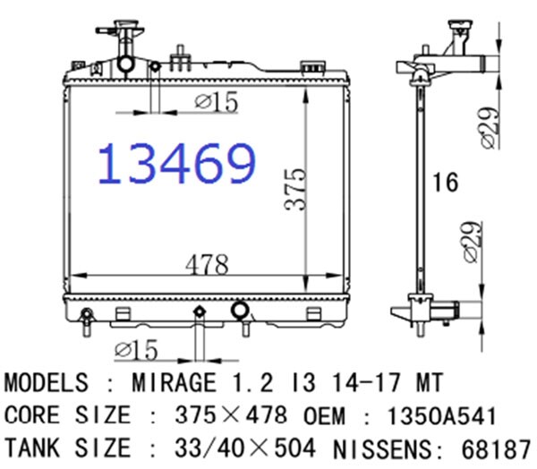 ラジエーター 三菱 ミラージュ A05A MT 2012年07月~2015年10月 AP-KBR-0009