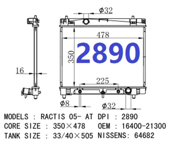 ラジエーター トヨタ ヴィッツ NCP95 2NZFE AT 2005年01月~2010年12月