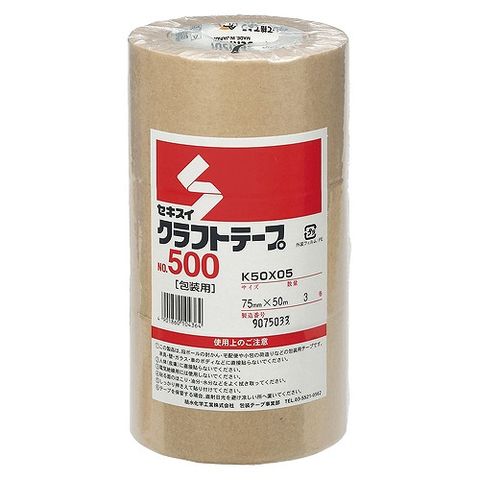積水化学 クラフトテープ500 幅75mm×長50m 入数:1セット(3巻) K50X05(21327)